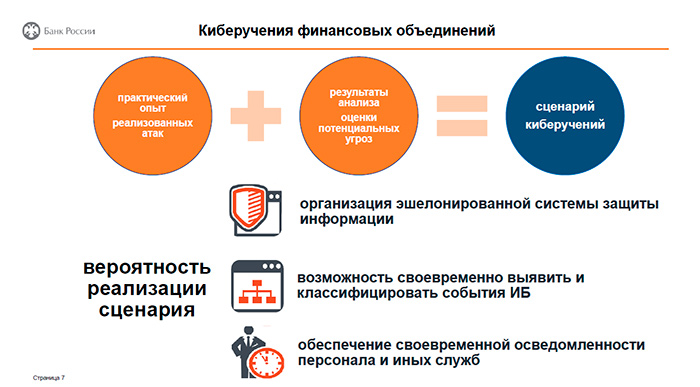 Исходя из анализа складывающейся обстановки и выявления новых фактов угрозы планируется развивать и внедрять меры по совершенствованию защиты финансовой системы. В частности, помогут киберучения, которые проводятся с 2020 года. Для организации учений готовится уникальный сценарий реализации компьютерных атак с учетом специфики бизнес-процессов каждого из участников мероприятия. Киберучения призваны в первую очередь помочь организациям оценить потенциал киберустойчивости к угрозам ИБ.