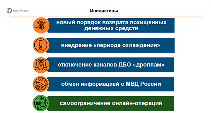 В мае 2022 года на сайте Банка России создан раздел по противодействию мошенническим практикам, где в доступной форме описаны популярные и актуальные мошеннические схемы. ЦБ совместно с коллегами из заинтересованных ведомств и федеральных органов исполнительной власти разрабатывает инициативы по противодействию злоумышленникам.